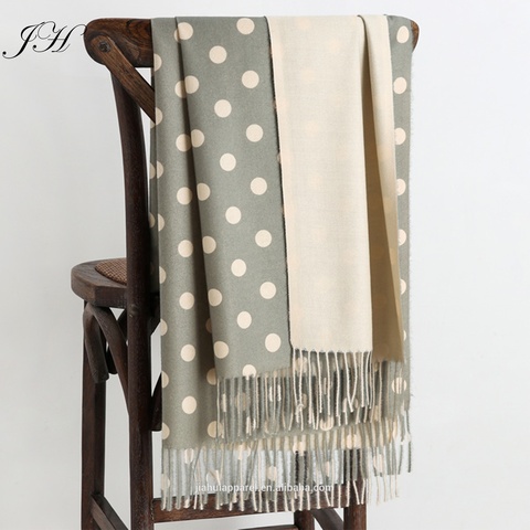Femmes Double-Face Hiver Écharpes Tricotées Bicolore Réversible À Pois Imprimé Pashmina Écharpe En Cachemire Laine Mélange Châle Wraps
