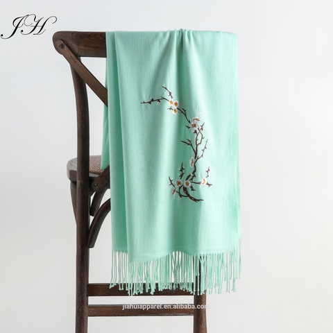 Lange weiche Winter-Pashmina-Schals für Damen Kaschmir-Quasten schals mit Blumen blumen stickerei Warme Wickel Woll schals